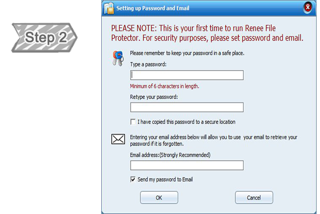 The first time you launch Renee File Protector, you need to set the master password which is for logging in the software and other functions.