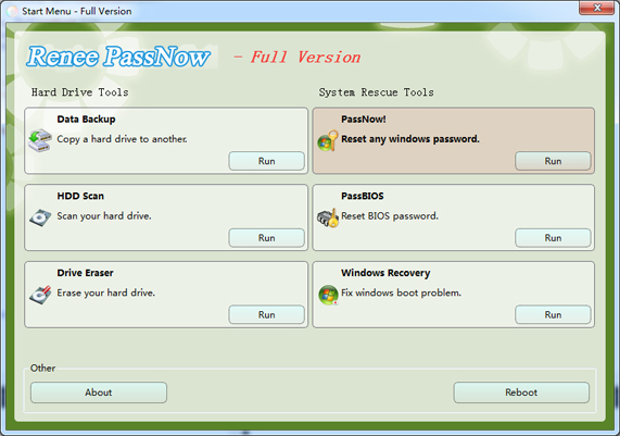 Renee PassNow is the most powerful system rescue utility when your computer is crashed, cannot enter Windows, or you want to work under boot environment.