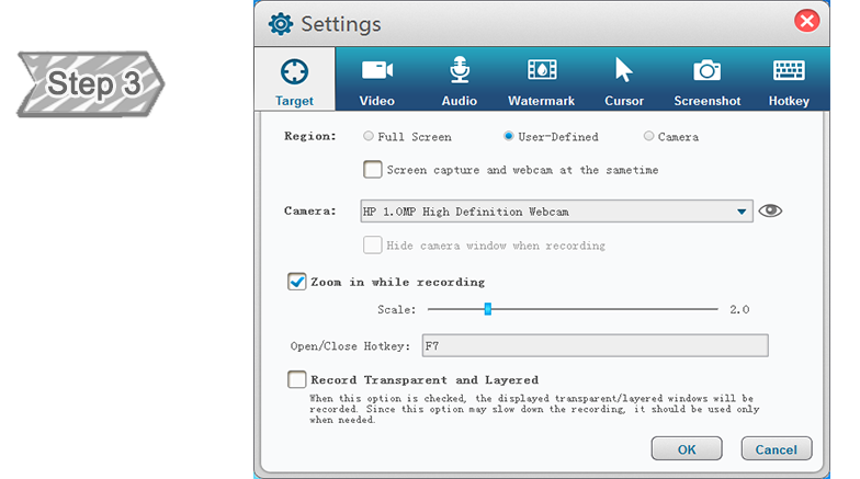 Create photo snapshots in JPG, PNG or BMP format at any time when screen recording process.