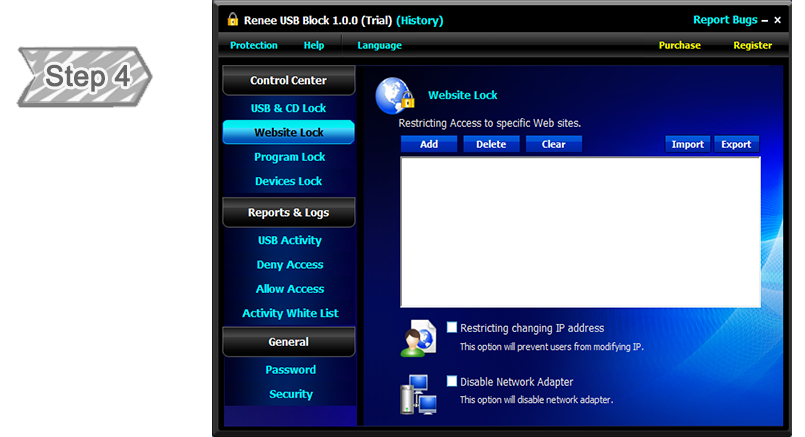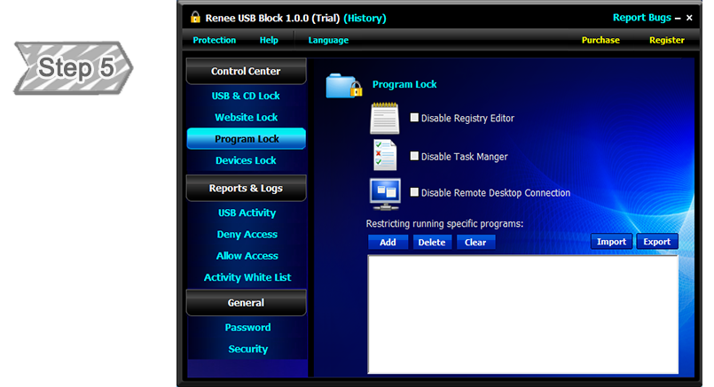 The best way is to block the related drives and devices which do not belongs to you. Renee USB Block provides a comprehensive solution for securing the data inside the computer. It can help you lock USB port, make DVD/CD burner read-only, block specified websites, forbid some programs and disable more devices.